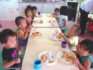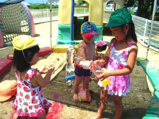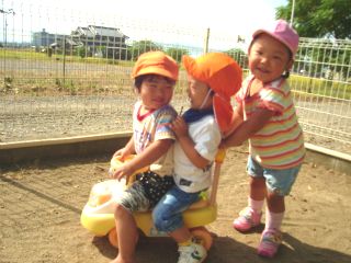 お外遊び お天気のいい日にはお外に出て遊びます。 お砂場や大型遊具のほか、身近にある自然のものを使って遊んだりします |